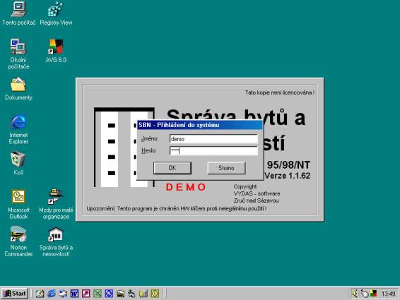 Pokud instalujete demoverzi programu, můžete jako přístupové jméno použit slovo demo a jako heslo slovo demo. Doporučujeme v ostré verzi programu toto uživatelské jméno odstranit. Verze START při spuštění heslo nevyžaduje.