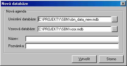 Ve druhém textovém poli je úplná cesta ke vzorové databázi, na jejíž základě se nová databáze vytvoří. Tuto cestu si program nastavuje sám a neměla by být měněna.