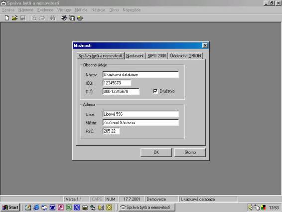 Nově vytvořenou databázi Správy musíme nejdříve připravit a nastavit před tím, než začneme vytvářet pasporty a předpisy nájemného.