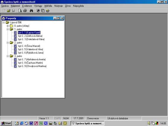 Vytvořené a uložené pasporty domů, pater, bytů a nebytů jsou přístupné pomocí stromové struktury. Koncové pasporty bytů a nebytů lze otevřít poklepáním levým tlačítkem myši na příslušný pasport. Obecně k otevření pasportu slouží menu, které se zobrazí po klepnutí pravým tlačítkem myši na příslušnou položku stromu.