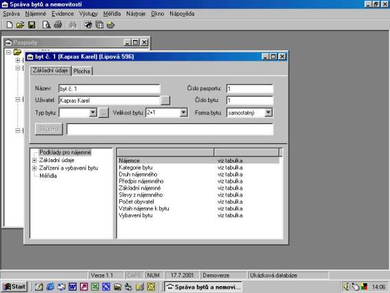 Způsob práce s pasporty domů, bytů a nebytů je ve všech případech stejný. Vlastní pasport je tvořen dialogovým oknem, které má v horní části položky základní identifikace a v dolní části položky ostatní.